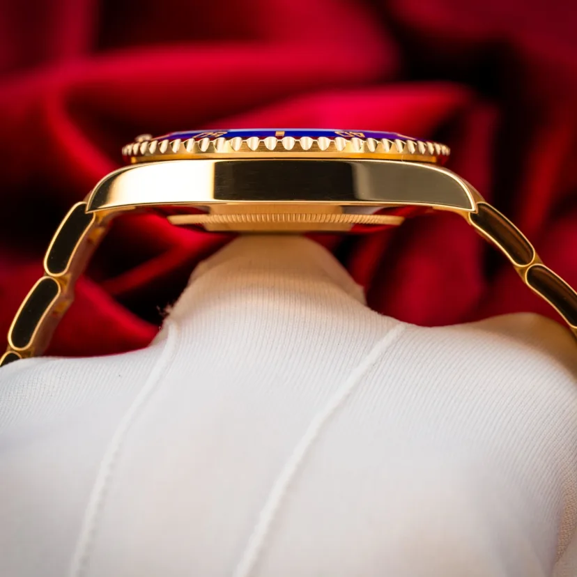 Introduced in 2020, the Rolex Submariner reference 126618LB-0002 has a yellow gold case measuring 41 mm acrpss, which is ever-so slightly larger than the previous generation. Power comes from the self-winding caliber 3235.