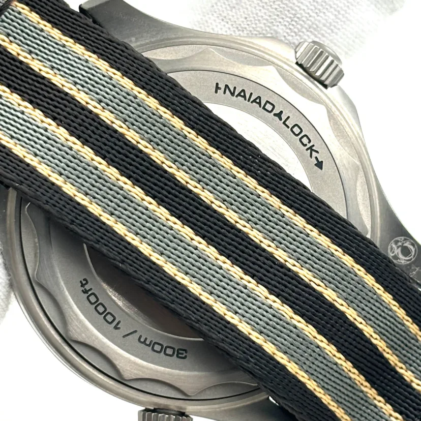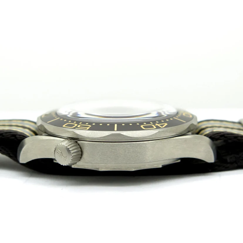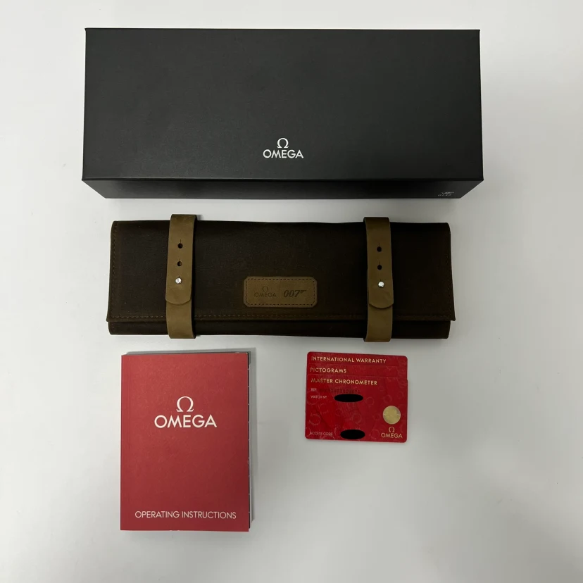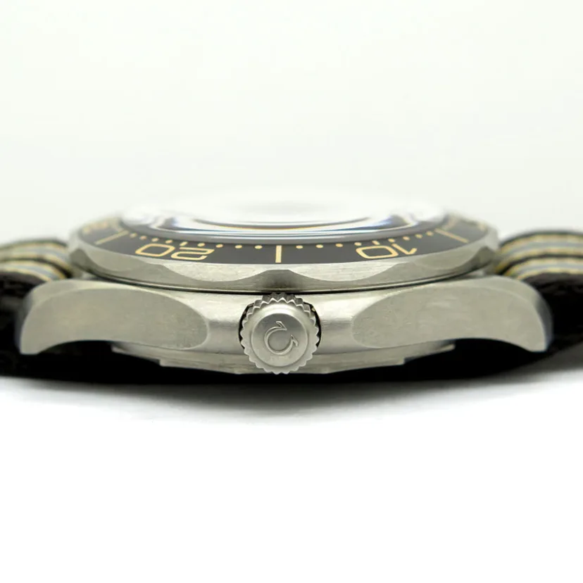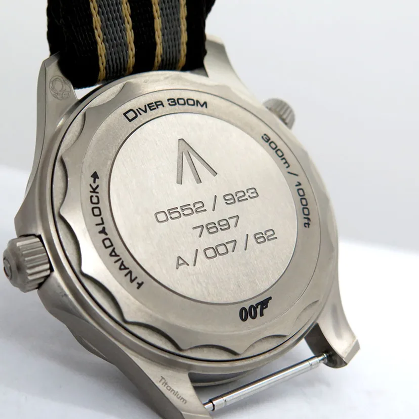 The Omega Seamaster 300M reference 210.92.42.20.01.001 'James Bond' features a titanium case and matching titanium mesh-style bracelet, as worn by Daniel Craig in the 2020 James Bond No Time to Die movie. It was introduced in December of 2019, some five months before the release of the movie. The Omega Seamaster 300M James Bond No Time to Die 210.92.42.20.01.001 features a full titanium case crowned by a ceramic bezel insert. It measures 42mm across, with water resistance set at 300 meters. Inside ticks the self-winding 8806 rather than the 8800: this watch does not feature a date window. The tropical brown dial proudly sports the 'Broad Arrow' logo at 6:00. a nod to military watches of yesteryear. This version is fitted with a NATO strap - a version with Milanese / mesh bracelet was introduced at the same time. LESS