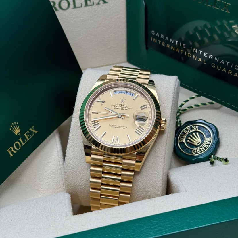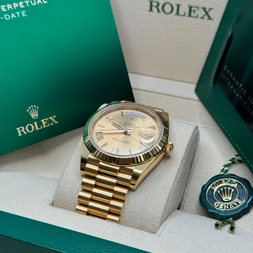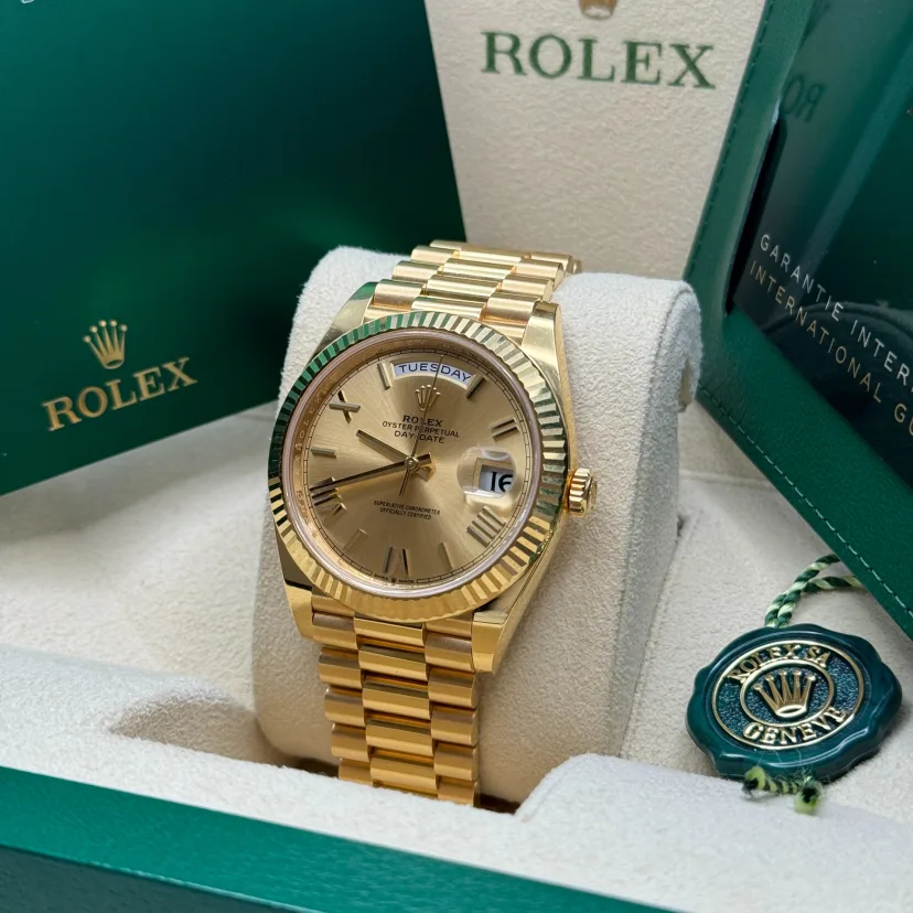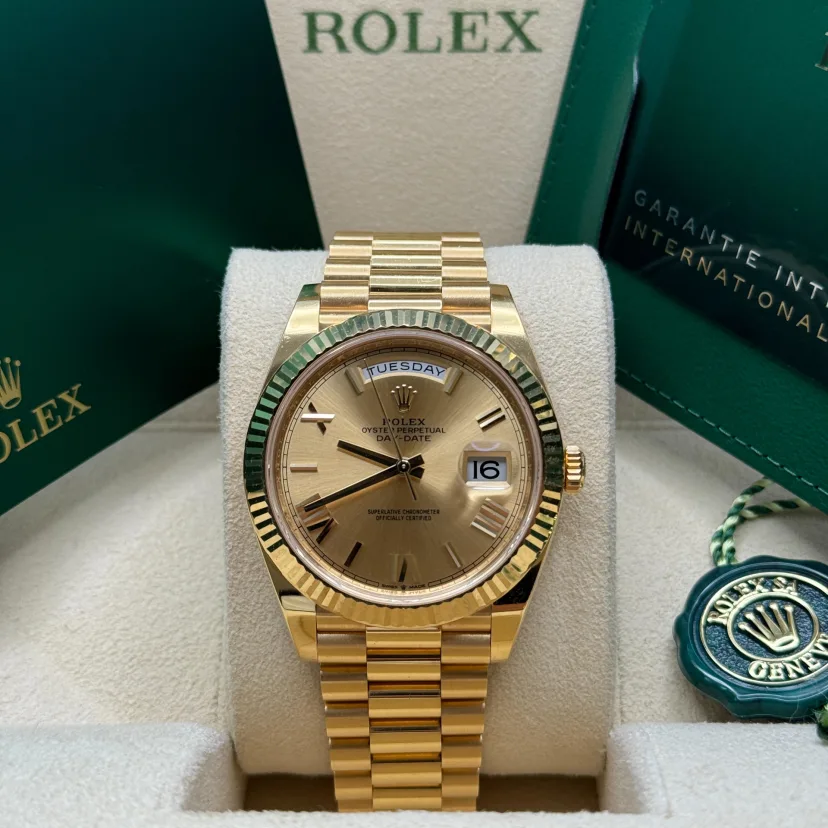 • 2023 Rolex Day-Date 40 Yellow Gold / Fluted / Champagne / Roman