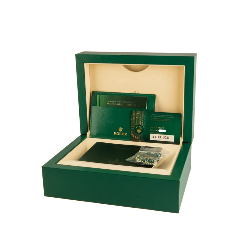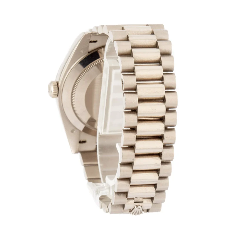 Pre-owned Rolex Presidential Day-Date ref 228239 (2021) is the ultimate status symbol, featuring the brand's iconic three-link President bracelet with semi-circular links, flawless 18k white gold forged in-house, and the collection's signature double apertures. Ref. 228239 is a particularly sought-after edition of the famous President's watch that also features a larger 40mm case, mesmerizing fluted bezel, and blue dial decorated with Roman numeral hour markers. It's a powerful statement piece that is sure to impress everyone you meet. Aside from its striking design set, ref. 228239 also features Rolex's impressive caliber 3255 Perpetual movement, complete with a longer power reserve, self-winding, and a Double Quickset.